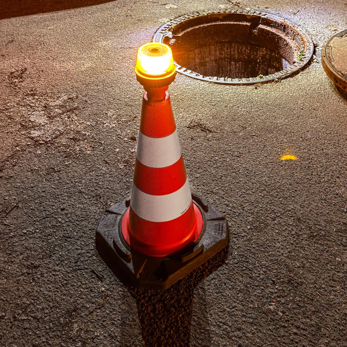 In contrast to passive reflections, the active flashing signal warns other road users early on and from a greater distance of unusual or dangerous situations. The 360° visible orange warning function thus significantly increases safety on construction sites, in the event of breakdowns, or during safety measures.