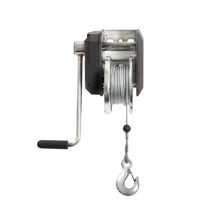 - hand crank rope winch enables easy and jerk-free lifting and lowering of various loads