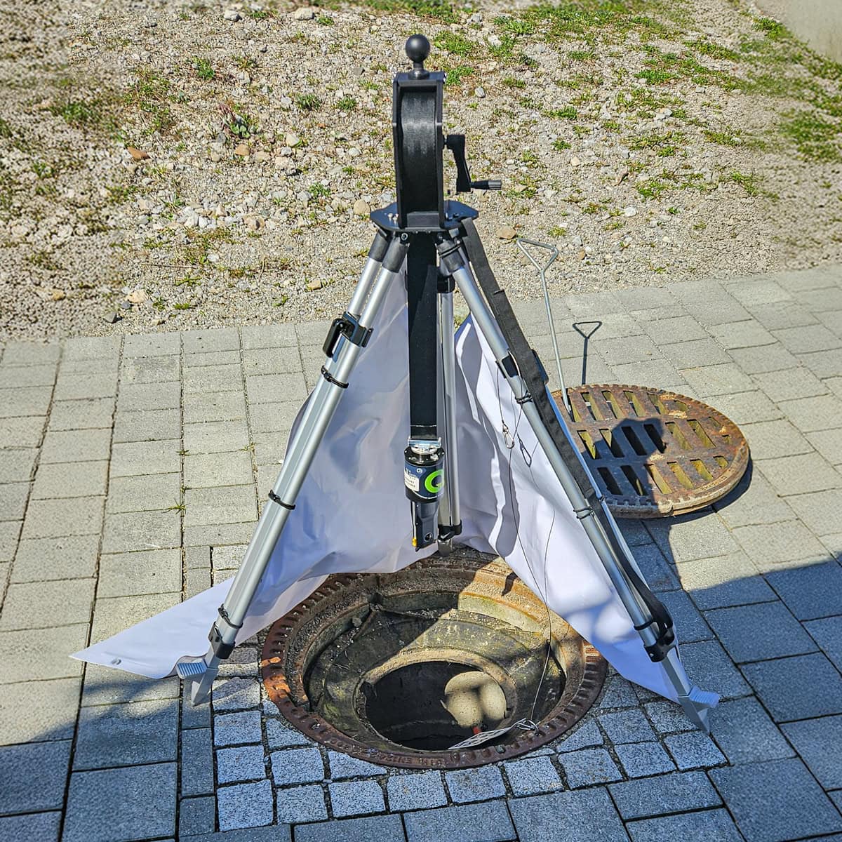 The integrated winch enables the camera to be lowered into the shaft in a smooth, controlled manner. This minimizes camera shake and significantly improves video quality and the accuracy of 3D reconstructions. The tripod also impresses with its high stability, even on uneven ground.