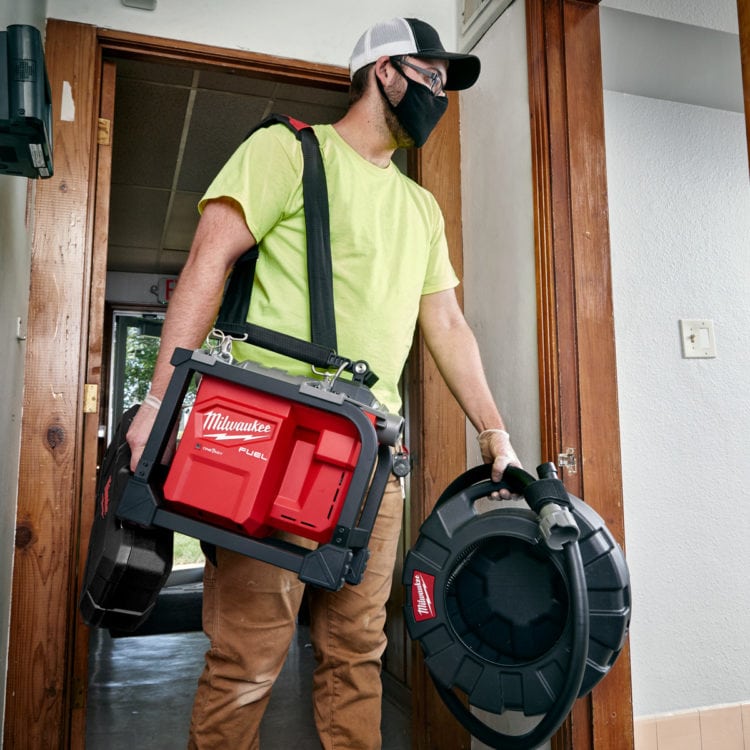 Milwaukee’s M18 FCSSM battery-powered sectioncal cable machine is the world’s first 18 V battery-based compact cable machine for 16 and 22 mm sectional cables from DN 32 – 160 mm up to 46 m in length.