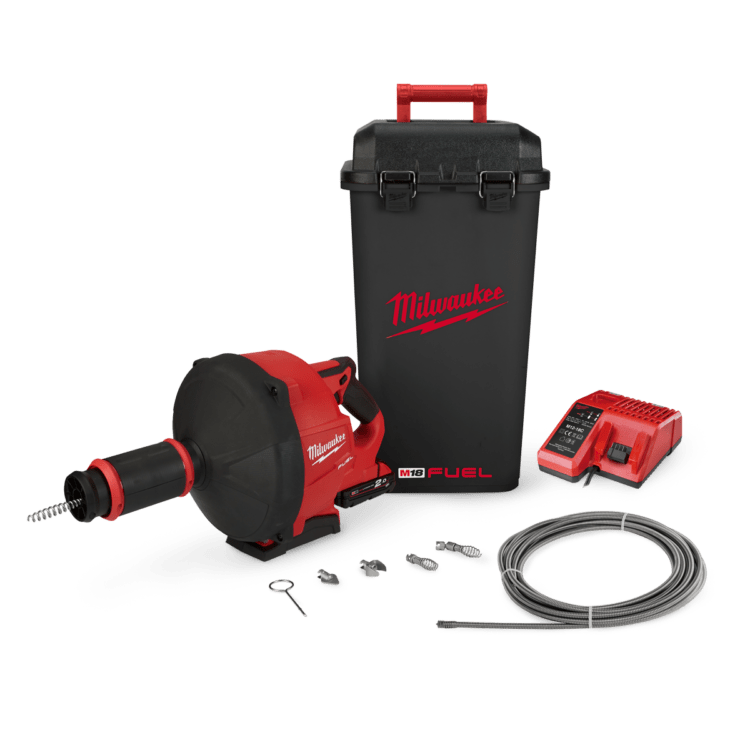The M18 FUEL battery-powered sink drain cleaning machine M18FDCPF is a particularly handy and light-weight device. The powerful rechargeable battery offers the freedom to remove blockages anywhere and quickly.