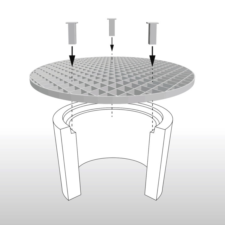 Every open manhole access, even those that are not being worked on, must be secured against falls by persons. A suitable protective measure against falling in is, for example, a rust protected against shifting.