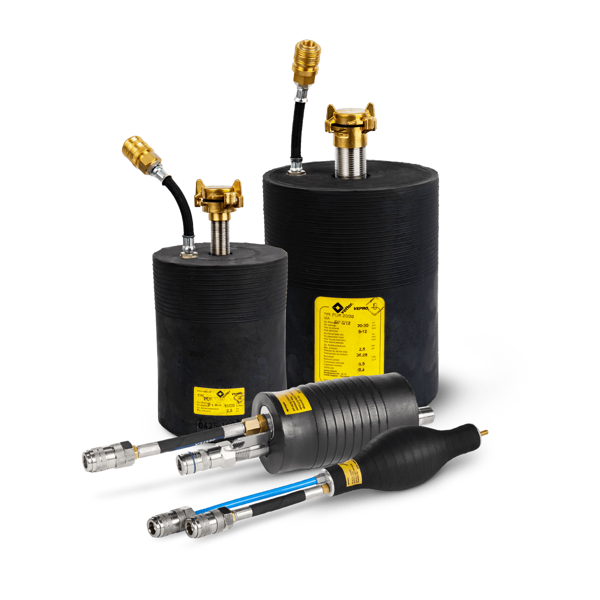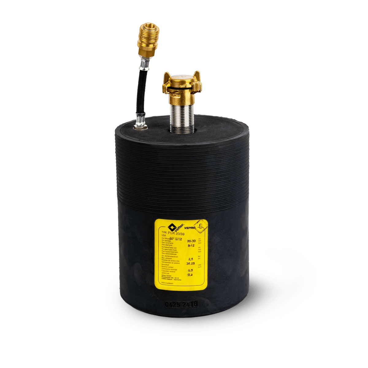 The mini inflatable pipe plugs with bypass are the ideal solution for leak testing, inspections, maintenance and cleaning work on pipes. Thanks to their integrated bypass, they enable secure sealing as well as testing and drainage of the medium – in pipes up to DN 300.