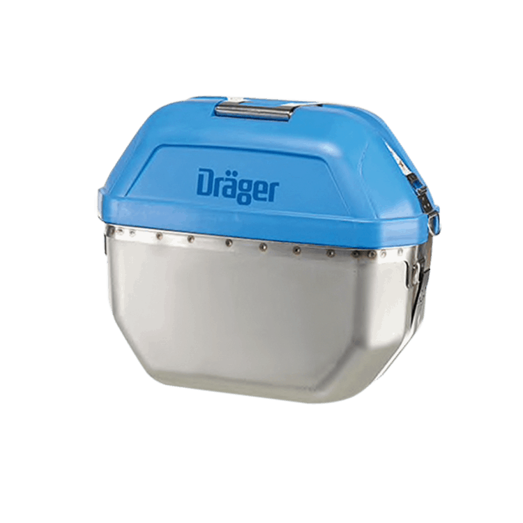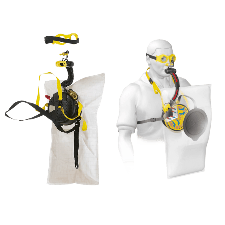 The Oxy SR 30 self contained Self-Rescuer makes you independent of the ambient air for 30 minutes in an emergency and protects your eyes from toxic gases with protective goggles. The Oxy SR 30 is easy to put on and immediately activated, making it suitable for less trained people.