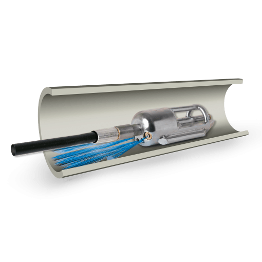 The latest nozzle technology and findings from the field were were applied when developing our heavy-clearing nozzles. The entire water jet energy produced concentrates on the sewer bottom to be cleaned. This results in a maximum efficiency combined with excellent traction and cleaning.