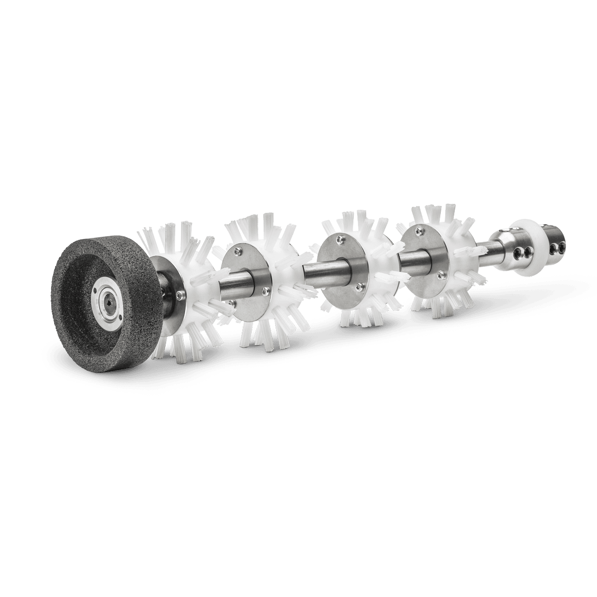 The centering brushes provide additional stability and enable safe use in PVC, PE, cast iron, concrete, and stoneware pipes.