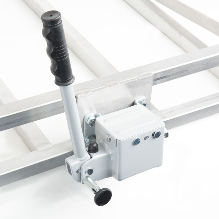 Mit den mitgelieferten Geländereifen und der Zugdeichsel kann die Plattform schnell und einfach zu einem Transportwagen umgebaut werden.