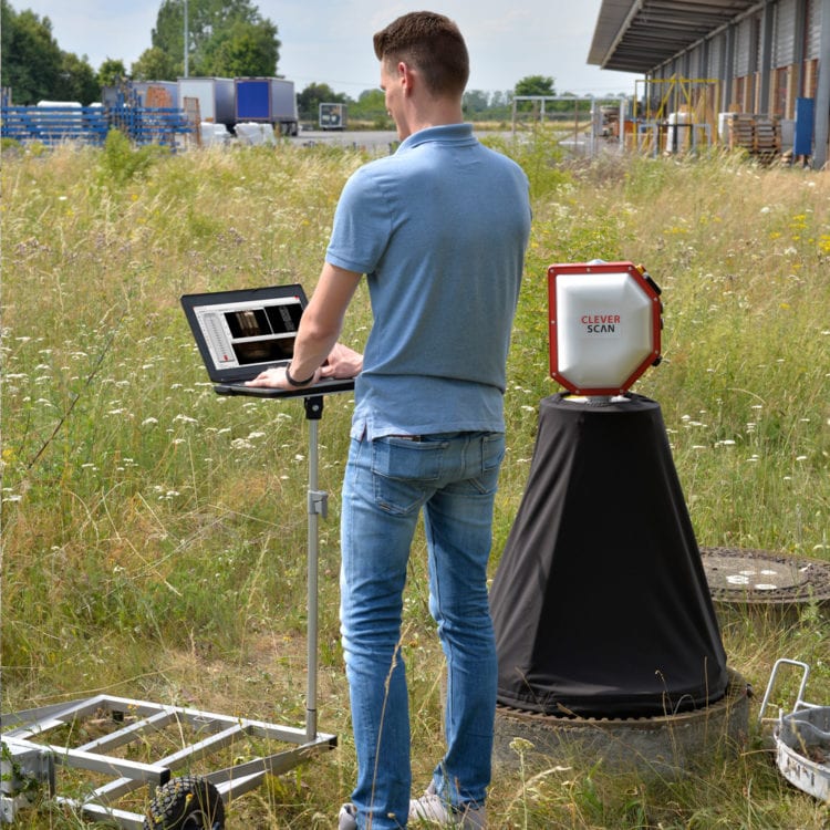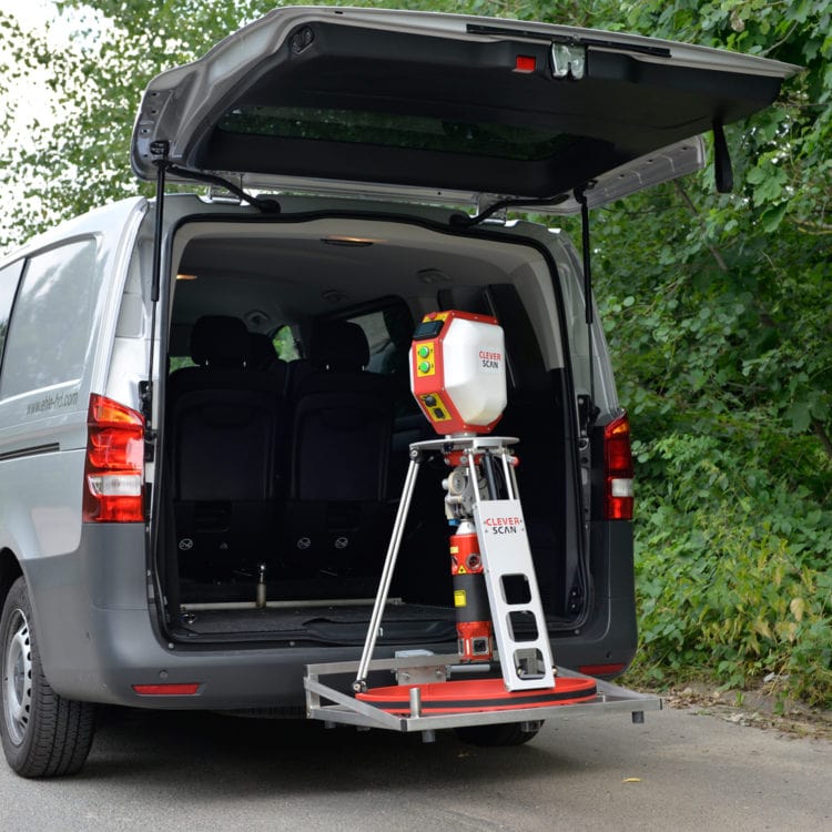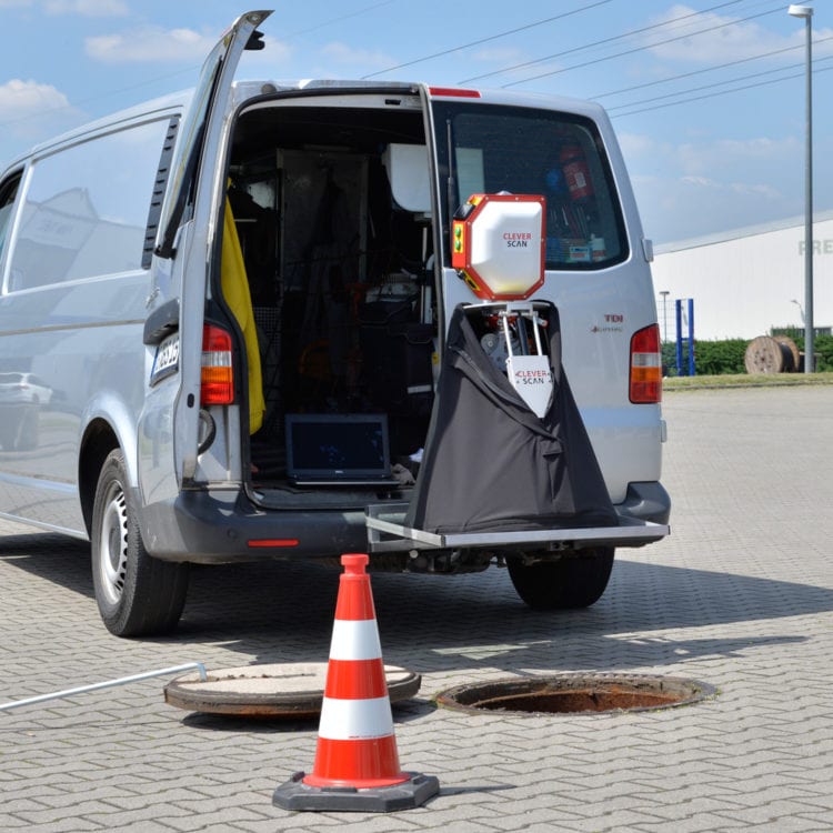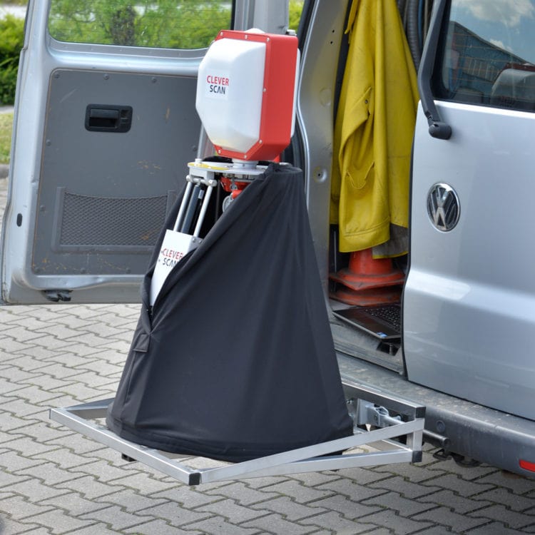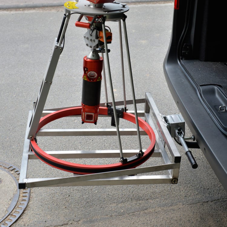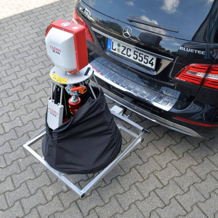 Die Anhänger-Plattform dient dem Transport der CleverScan Schachtinspektion von Schacht zu Schacht. Sie kann direkt an jede PKW Anhänger-Kupplung montiert werden.