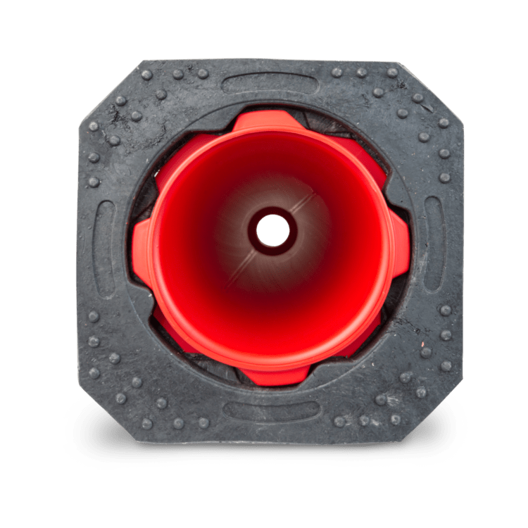 - schwerer Leitkegelfuß mit Anti-Rutsch-System für hohe Standsicherheit