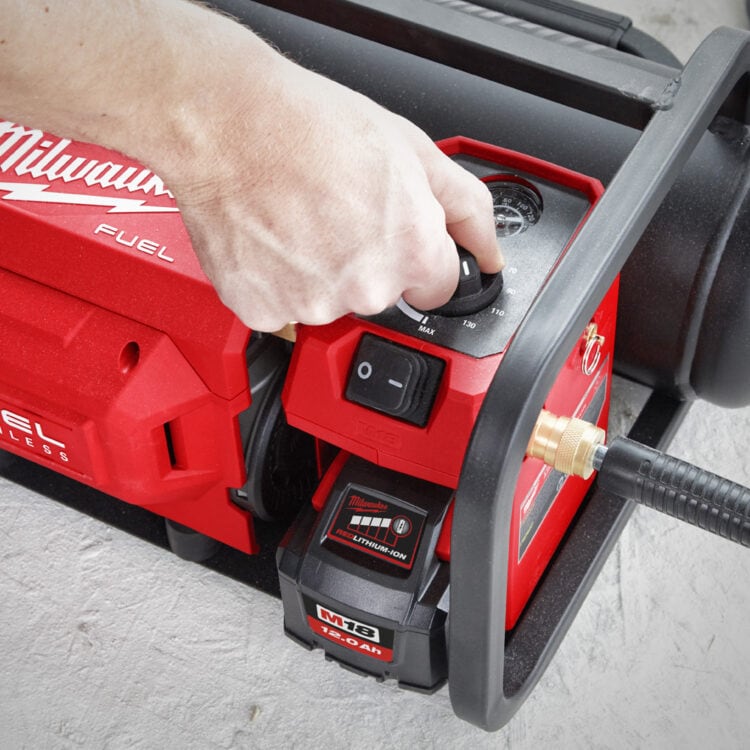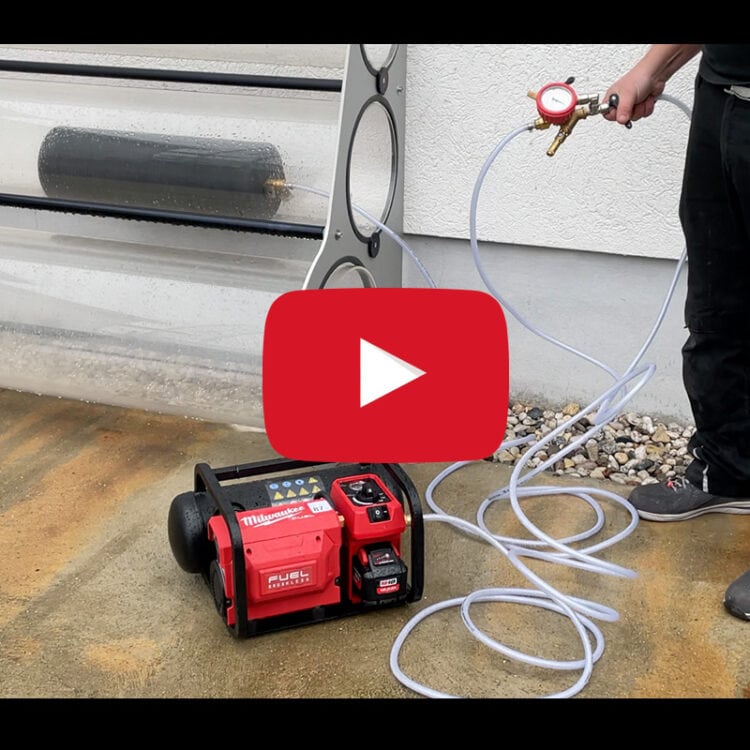 Der M18 FUEL Akku Kompressor von Milwaukee mit einer effektiven Luft Liefermenge von 48 l/min und 9,31 bar Druck ist das ideale Werkzeug zum Befüllen von Absperrdichtkissen bis zu ca. 500 mm Durchmesser.