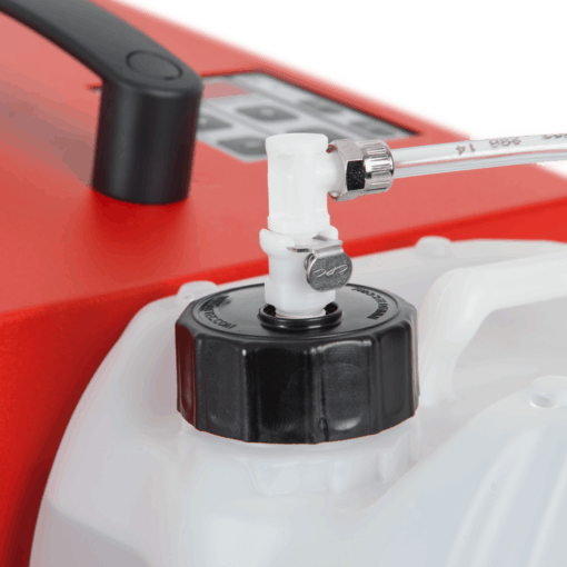 - Starker Ausstoß – das Integrierte Gebläse ermöglicht ohne Abdichtung das einfache Benebeln eines Rohrleitungssystems
