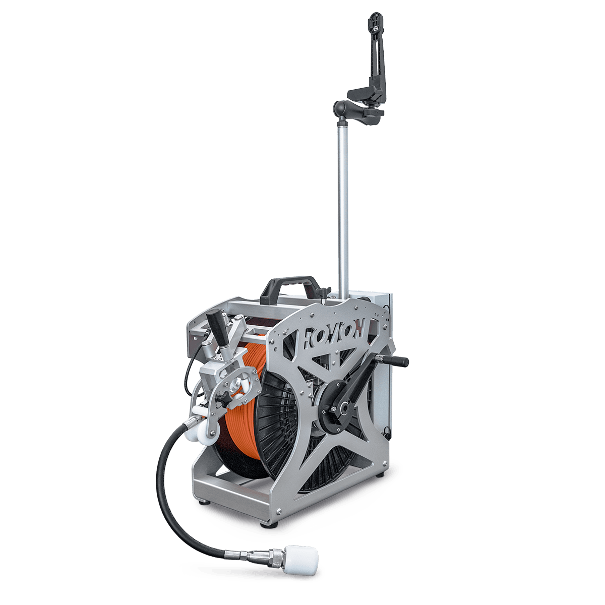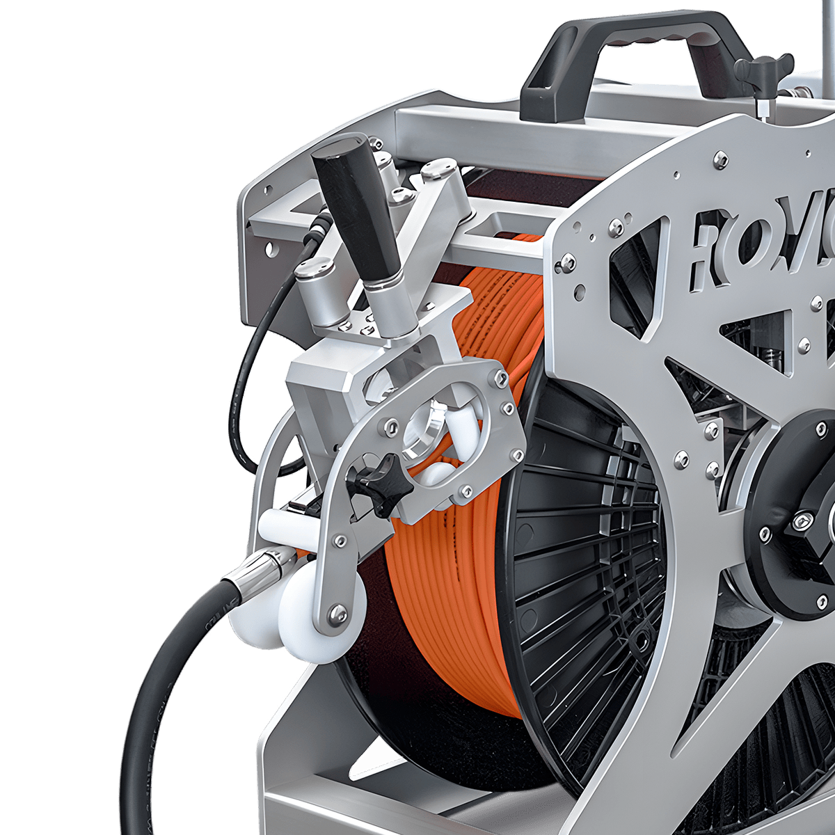 Die leichte manuellen Rovion Kabeltrommel RMX200 HD von IPEK ist besonders kompakt, tragbar und einfach zu bedienen. Die mobile Kabeltrommel fasst max. 200 m hochstabiles Kamerakabel und bietet eine Aufwickelhilfe, damit das Kamerakabel sauber und schnell auf die Kabeltrommel gewickelt werden kann. Zusätzlich kann das mobiles Bedienpult VC500 an eine montierbaren Teleskopstange befestigt werden.