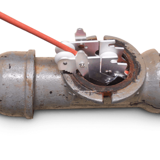 Das Schiebekabel-Umlenkgerät schützt und schont das Kamera-Schubkabel (Schiebeaal) vor scharfen Kanten der Reinigungsöffnungen und erleichtert darüberhinaus das Schieben. Universell einsatzbar an diversen neuen und alten Reinigungsöffnungen, sowie offenen Rohrenden.
