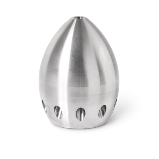 Unsere Standard-Düsen aus VA zeichnen sich durch hohe Langlebigkeit sowie sehr gute Reinigungs- und Zugleistungen aus. Durch die bogengängige Ei-Form eignen sich diese Düsen bestens für den Einsatz im Hausanschlussbereich.