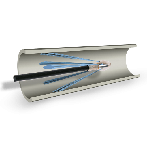 Die optimierte Anordnung des Strahlwinkels bewirkt neben der guten Reinigung auch eine hohe Zugkraft der Düsen. Dadurch sind sie auch für geringe Wassermengen bestens geeignet. Richtig eingesetzt, zentriert sich die Düse automatisch im zu reinigenden Rohr.